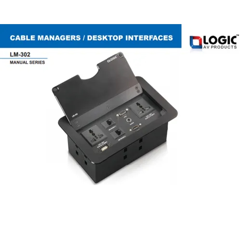 Logic Manual POP-UP Box with Female to Female Connectivity – 1xUniversal Power Socket, 1xUSB-A Mobile Charger, 1xHDMI 2.0V, 1xType-C USB 3.1V, 1xCAT 6A Network/RJ-45