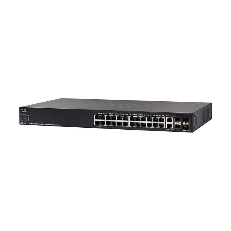 SWITCH SG550DX-24 – Cisco SG550X-24 Stackable Managed Switch | 24 Gigabit Ethernet (GbE) Ports | 2 x 10G Combo | 2 x SFP+ | L3 Dynamic Routing | Limited Lifetime Protection (SG550X-24-K9-IN) – ETHERNET PORT CONFIGURATION: 24-port 10/100/1000, 4 x 10G uplinks (SFP+) CONFIGURATION & CONTROL: Stackable (8 units), on-box WebUI, CLI, SNMP, Cisco FindIT Network Manager, PnP, Auto Smartports, auto-discovery, zero-touch deployment L2+/L3 FEATURES: Static routing, QoS, Voice/Guest VLAN, GVRP, MSTP, IGMP Snooping, Time-based Access Control Lists L2+/L3 FEATURES: Dynamic routing, RIP, VRRP, Policy-based Routing, IGMP querier, Time-based Access Control Lists, 802.1x, Web-based Authentication, IPv6 First Hop Security, Dynamic ARP Inspection PEACE OF MIND: Limited-lifetime warranty, next-business-day replacement, one-year technical support, and free software fixes for the term of the warranty ENERGY EFFICIENT: Optimizes power usage to lower cost to operate. Compliant with IEEE802.3az Energy Efficient Ethernet